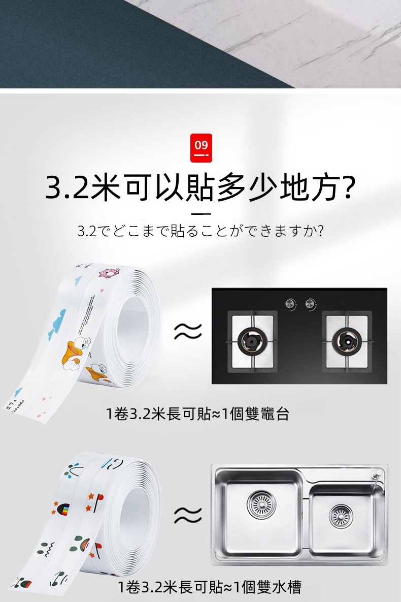 4分鐘前限時搶購 美縫貼防水防霉廚房水槽洗碗灶台封邊擋水條,衛生間馬桶邊緣縫隙貼 - 【嘗鮮價】3入組-NT$980