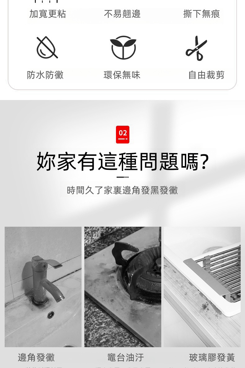 5分鐘前限時搶購 美縫貼防水防霉廚房水槽洗碗灶台封邊擋水條,衛生間馬桶邊緣縫隙貼 - 【嘗鮮價】3入組-NT$980